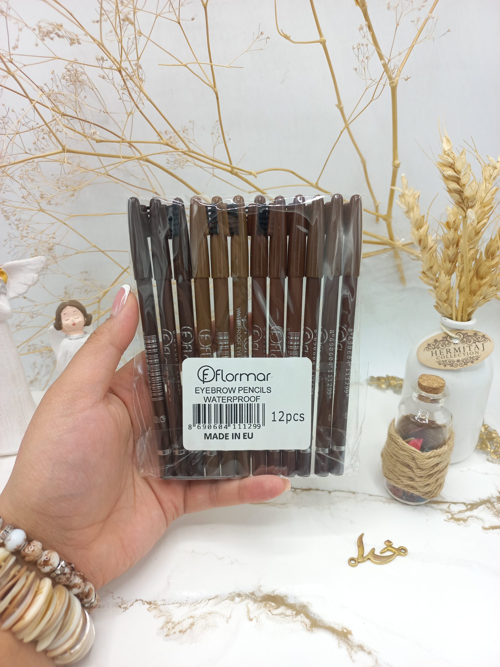 مداد ابرو ضد آب فرچه دار بسته 12 عددی فلورمار ساخت اروپا با رنگهای متناسب با هر رنگ ابرو، برای حالت دادن به ابروها طراحی شده است. این محصول برای کشیدن خط ابرو و پر کردن فضاهای خالی افرادی که از ابروهای کم پشت خود ناراضی هستند، بسیار کاربردی است.