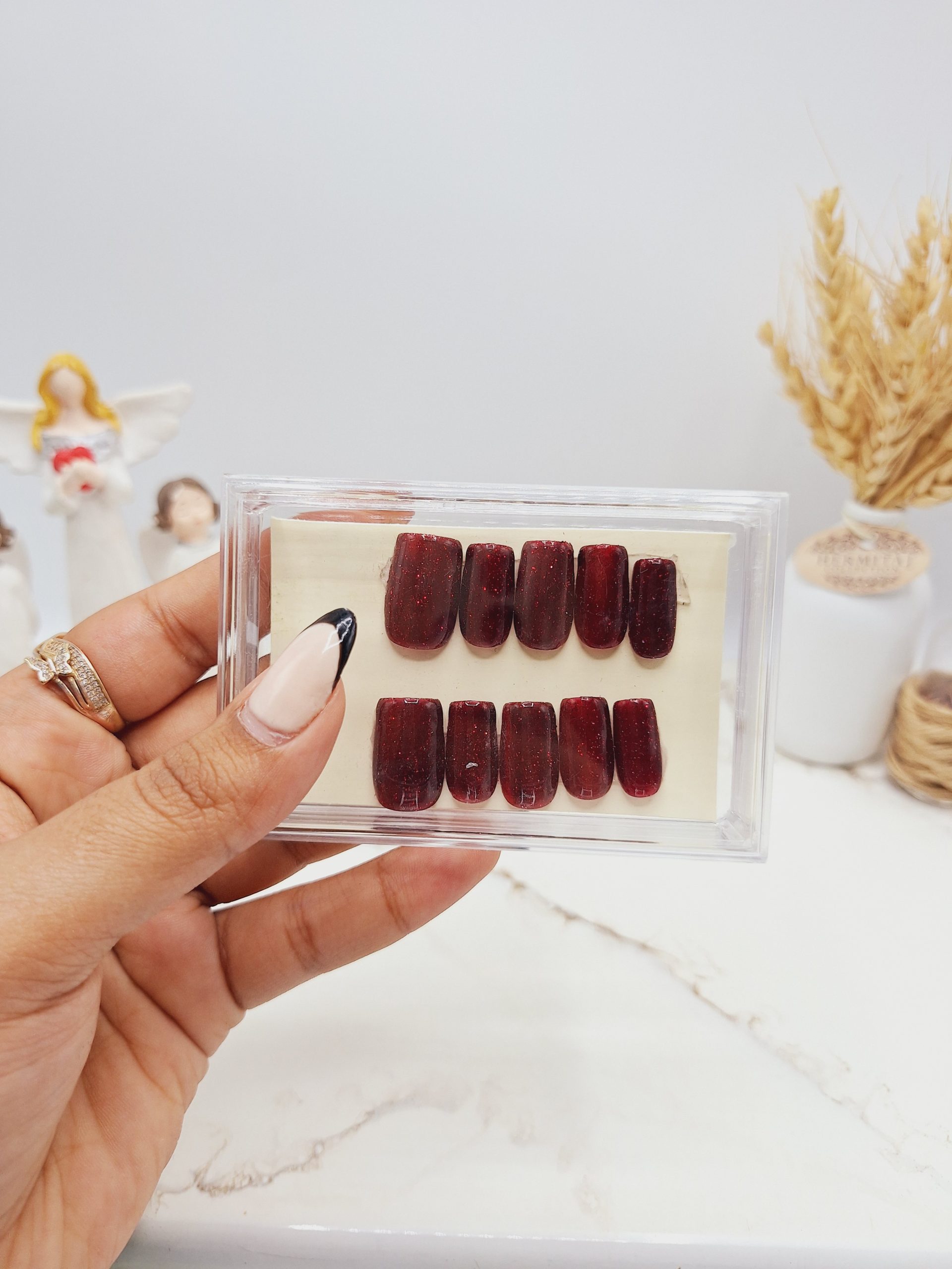 ناخن مصنوعی با مواد کاشت مدل زرشکی شاین دار (به همراه پک اختصاصی)