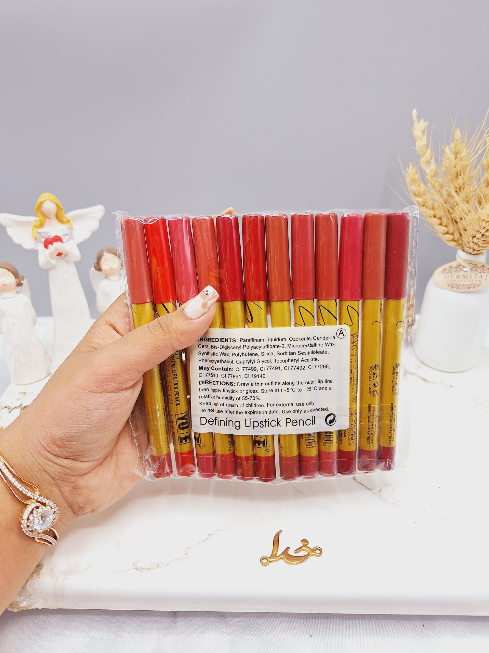 ویژگی های پک 12 تایی رژ مدادی برند YUBE پوکه طلایی کد A