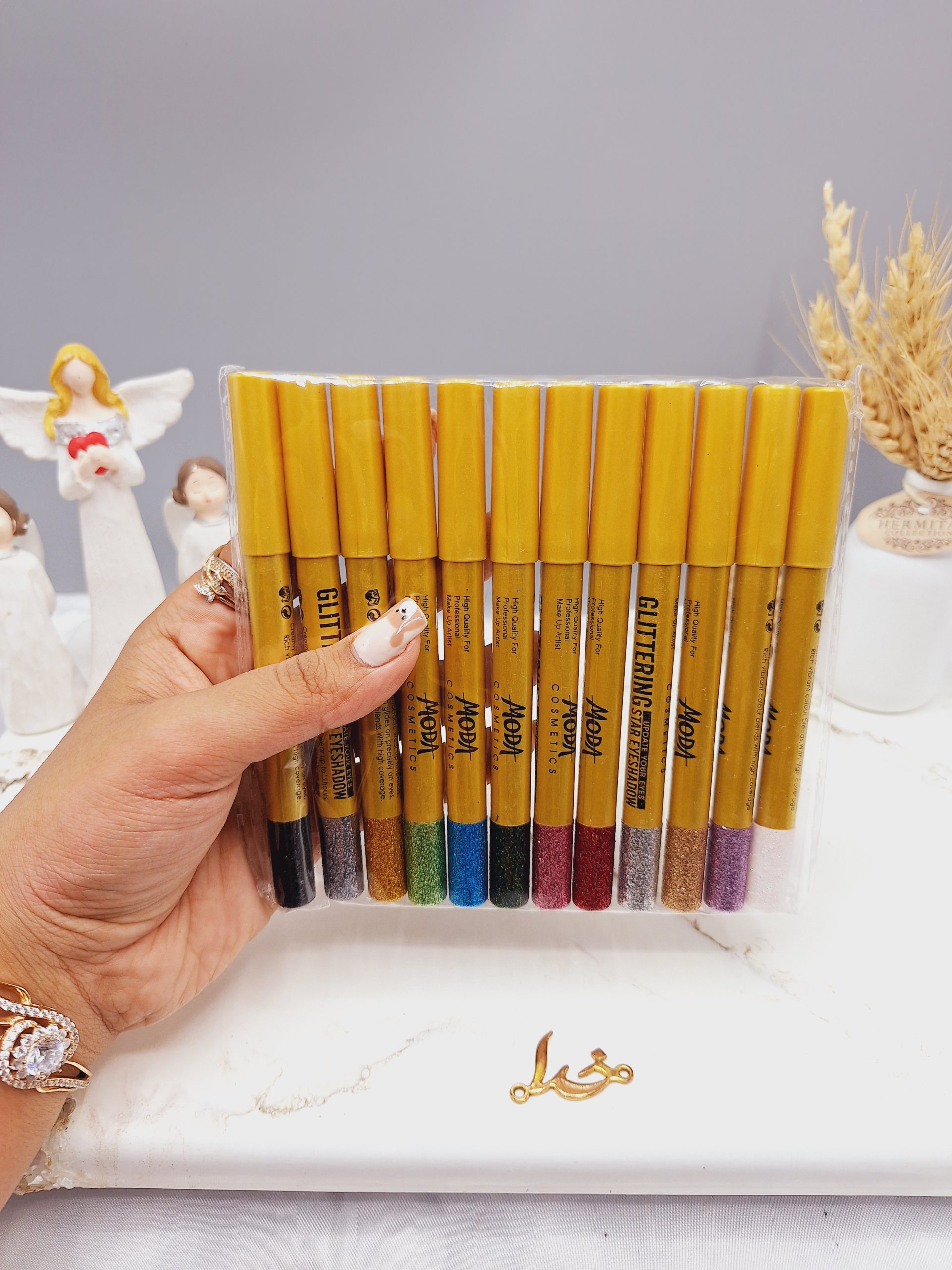 پک 12 تایی مداد چشم گلیتری برند MODA پوکه طلایی